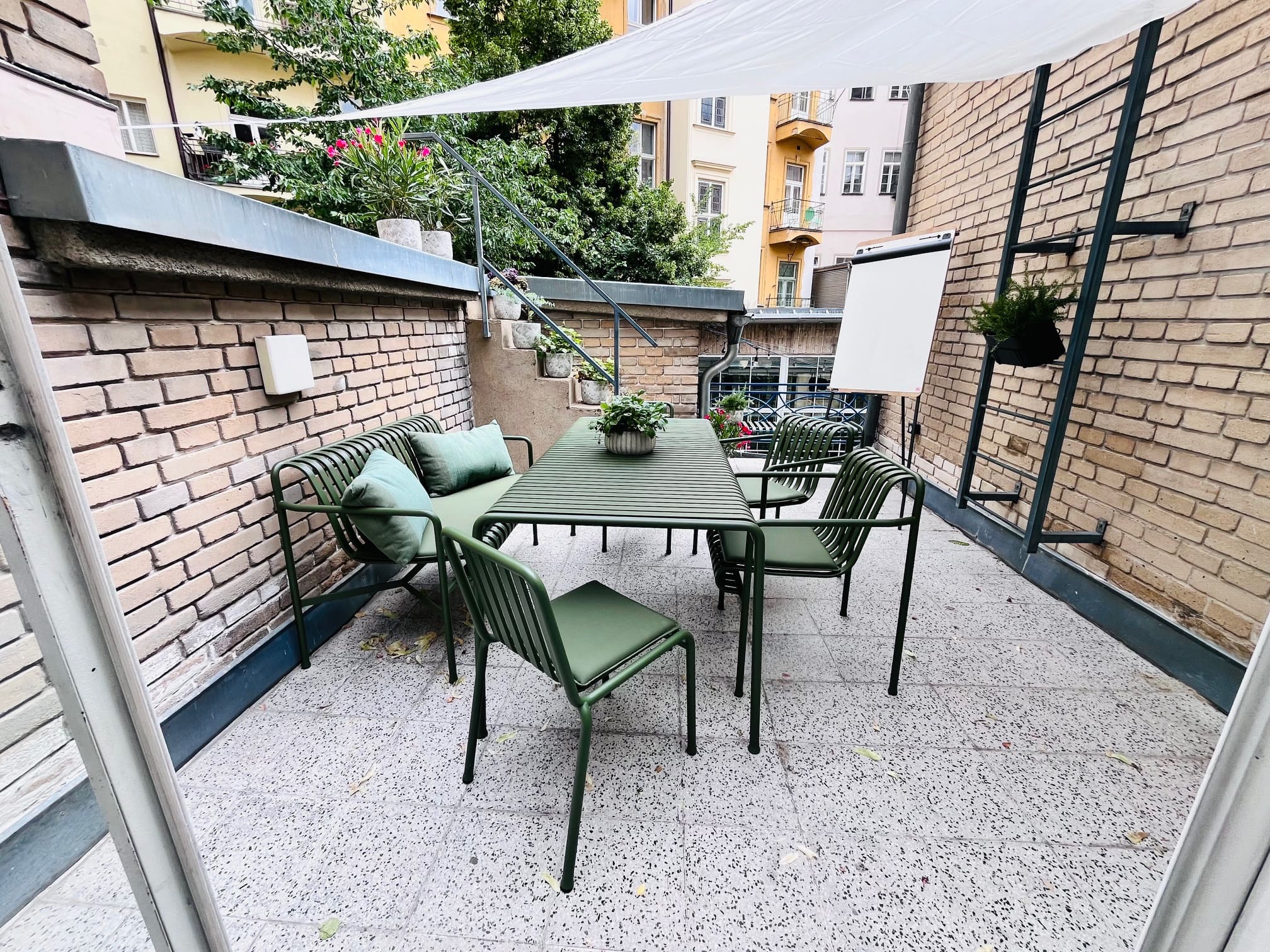 Ideální pro neformální jednání, meeting, koučink, mentoring Důvěrný prostor pro jednání s malou terasou.